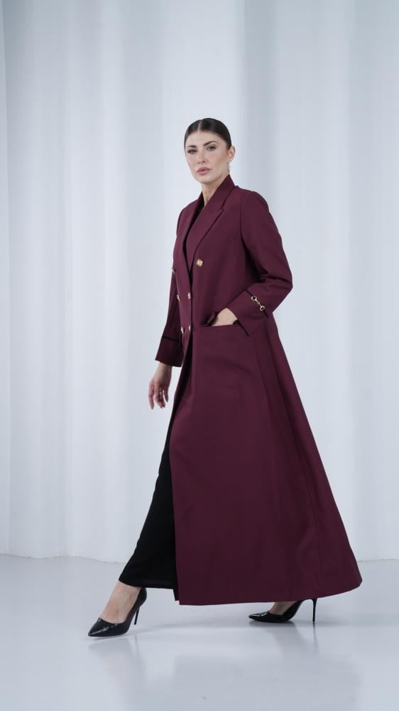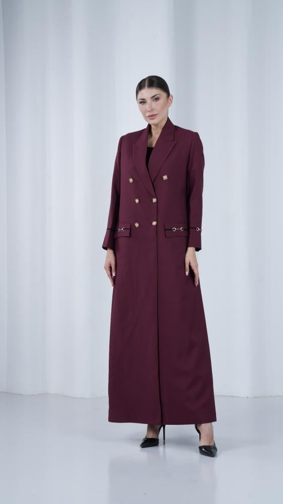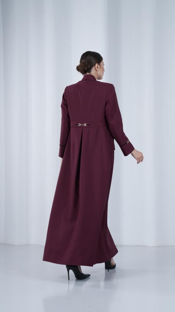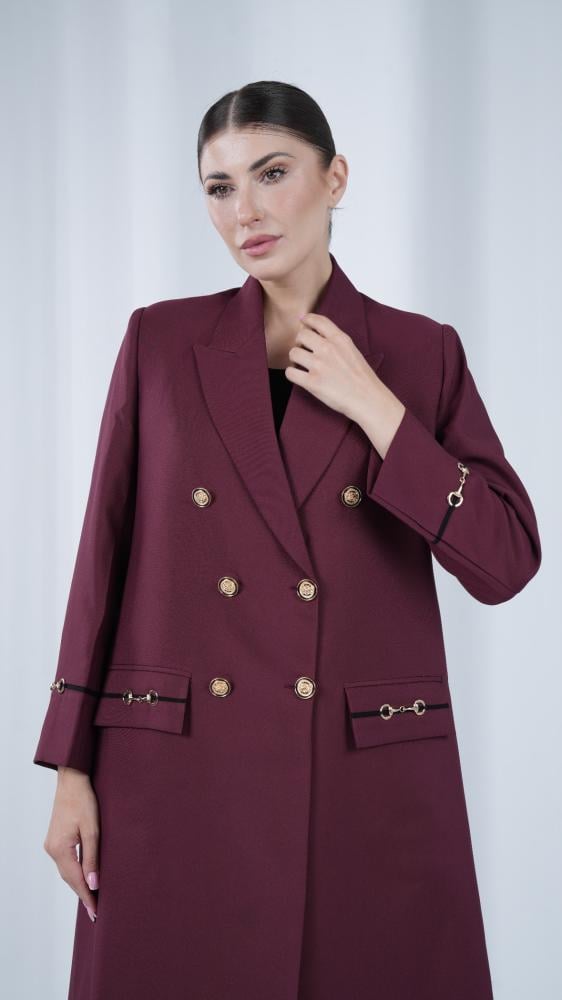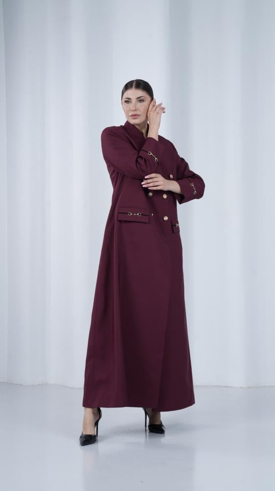 ٩٢٠ ر.سعباية رسمية أنيقة مصممة من قماش الكتان باللون العنابي ، مزينة بأزرار ذهبية معدنية ذات جودة عالية