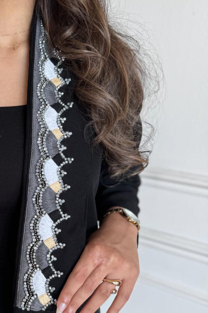 مع كولر مطرزه بالكامل تطريز يدوي باللون الرمادي و الفضي ليزيد القطعة تميز