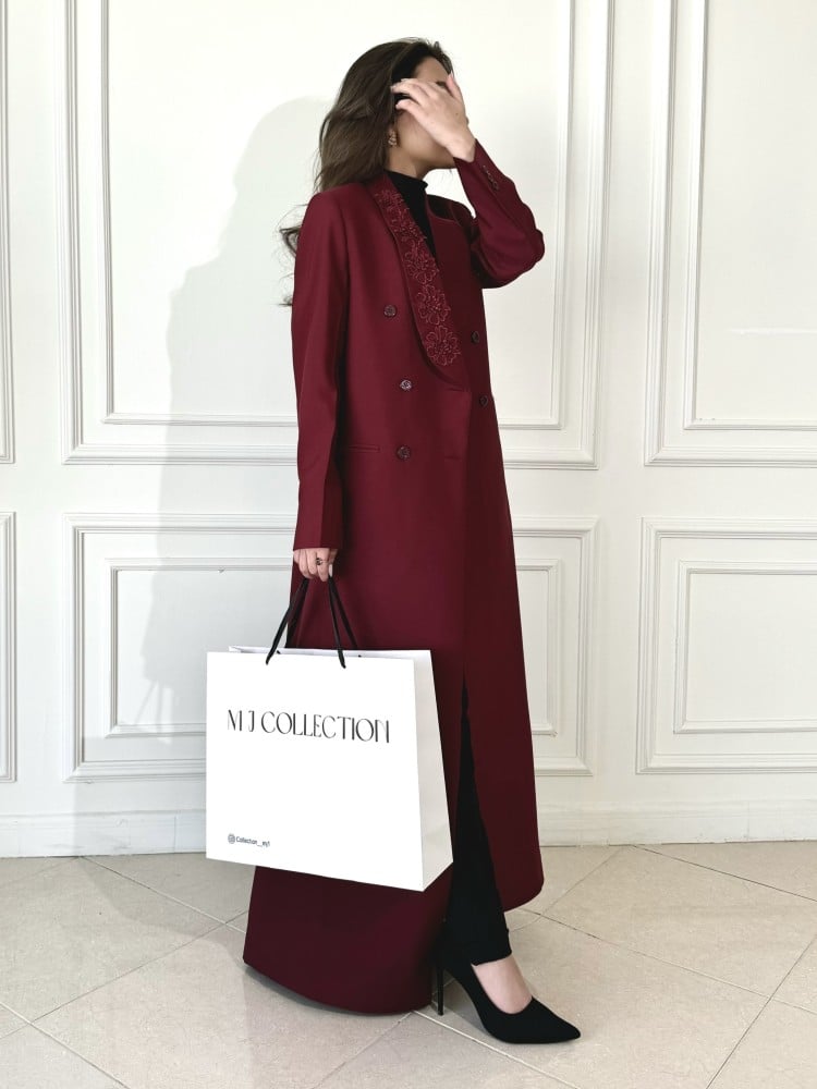 من قماش الكتان الياباني من باللون العنابي بقصة رسمية