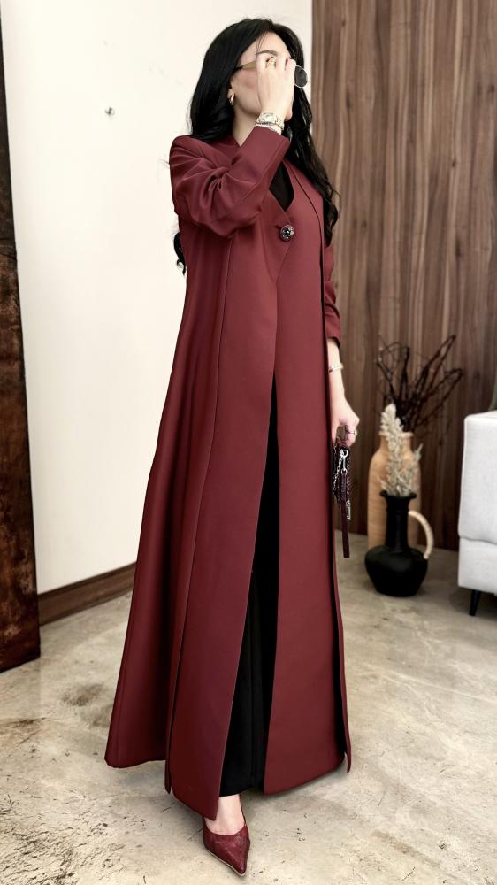 من قماش الكتان باللون البرغندي بقصة مميزة